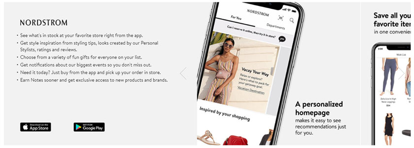 Nordstrom hace un gran trabajo al usar la tecnología para cerrar la brecha entre lo físico y lo digital. Los clientes pueden explorar la mercadería en el navegador o a través de la aplicación de Nordstrom y solicitar que se configuren artículos específicos en un vestidor de su tamaño. Esta es una excelente manera de crear el compromiso del cliente con las aplicaciones de una marca.